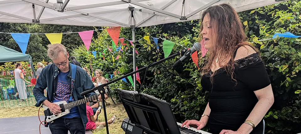 “aPopLexy” have a unique sound built around the songwriting talents of ‘Lexy’ Marianne-Rose Tovey (Vocals & keyboards) & David Fowler’s musicianship (Guitars & Sax) with Colin Brunton guesting on Cajon Their repertoire draws on a range of influences, including folk, synth-pop, goth & the avant-garde.